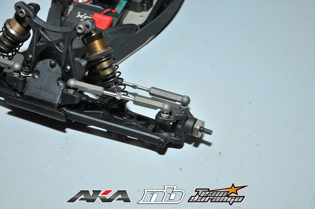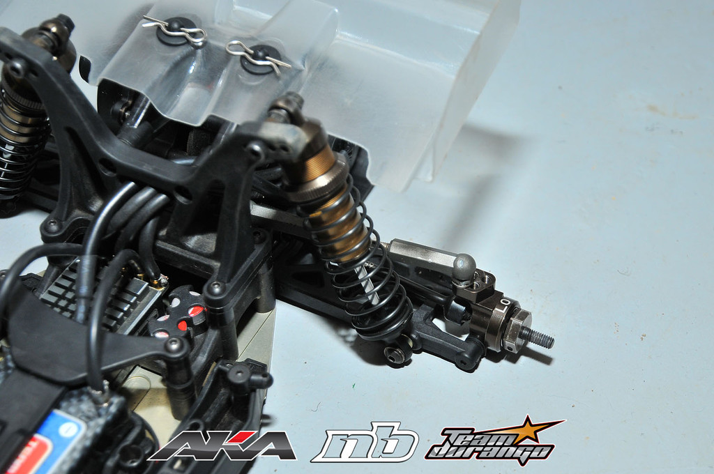 Let’s take a look at the front of his car. I notice he’s running the caster blocks set to narrow and using a wide hex to compensate the width differnce. It’s really hard to tell which front suspension mount he’s using because theoretically he could be running the the RB5 sp2, the rb5 wc narrow mount, or the RB6 front mount in combination of the different arms as well. For the rear, Tebo has been running the RB5 1 hole arms with the aluminum hubs. This seems to be his “go to” configurations since he’s been running it this way at multiple big events now.
