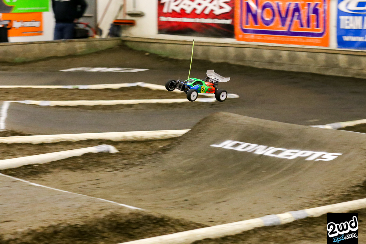 2wd mod was a hard fought battle all weekend long. Your top qualifier was Michael Schoettler with his new Team Associated B5R. It was my first time to see a B5 on the track and it looked on point! Michael had full control of the race from start to finish. From the sound of the tone, 2nd place qualifier Kyosho’s Ryan Matesa put a hard charge at the beginning of the race, but as Schoettler started to find his groove he started to pull away from the young Kyosho star. Missing 2 of his qualifying heats because of work, Team Associated’s Luke Smith mounted a ferocious charge from mid pack to finish 2nd overall. Topping off the podium was JC Johnson with his mid motor TLR 22 2.0. It was good to see JC racing again as he took some time off from racing to get his career on track. Great to have you back JC and terrific job making the podium.