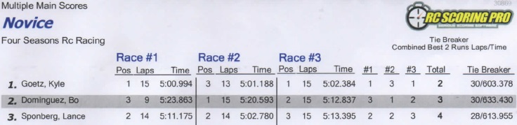 Novice — It was a late decision to open up Novice for the series, but I’m glad it was done. The future of this hobby stems from racers like these that are willing to dedicate the time and effort to enter a 2 day race that could be quite intimidating. Congrats to 1st place winner Kyle Goetz, 2nd place finisher Bo Dominguez, and 3rd place Lance Sponberg for taking part in the finale race and hope to see you again next year on the tour!
