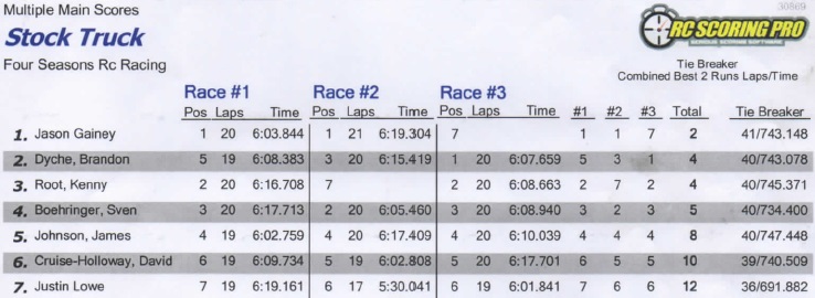 The event was scheduled for open practice on Friday from noon till 9pm and all 4 rounds of qualifying to be ran on Saturday. Sunday would hold triple A-main events decided by best 3 of 4 rounds of qualifying with 6 minute lower mains for bumps and award ceremony held after racing.