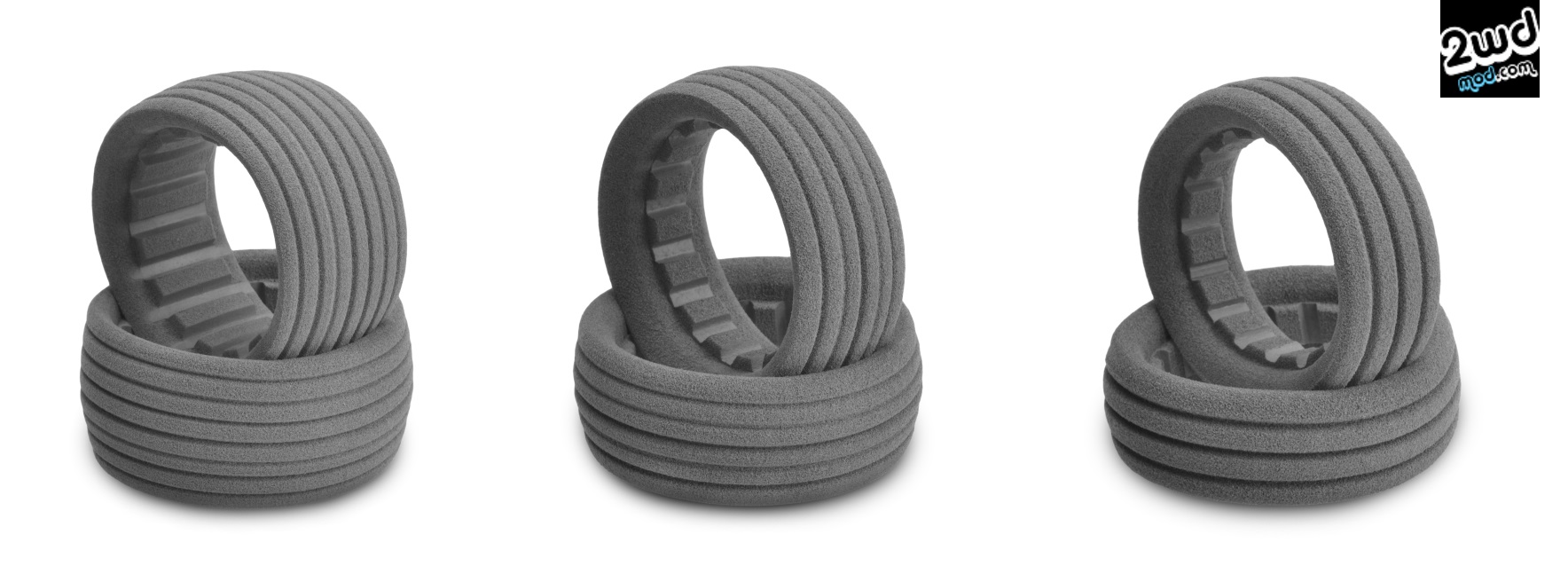 JConcepts has upped the ante with the release of the new Dirt-Tech closed cell inserts. Gray in color, the new inserts are designed in conjunction with tire insert guru, Brian “Dirt” Kinwald to bring the ultimate touch and feel while providing utmost durability. The 2wd | 4wd rear and 4wd front insert has alternating shallow and deep cuts on the outside which touch off against the tire inner carcass providing a cushy response and feel. The 2wd front insert has 3 relatively deep cuts spaced across the width giving a subtle feel to front tires for precise steering control. The inside has horizontal channels cut in a 360 pattern to soak up the large impacts and help create forward bite and increase acceleration.
