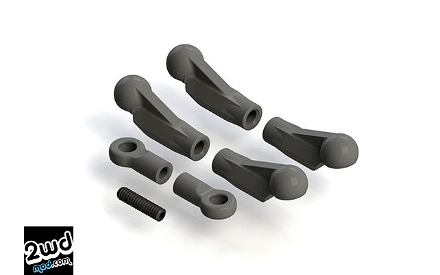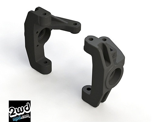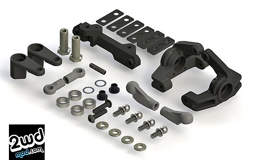 - Ackermann Adjustability – The steering tie-rod ball studs are parallel to the kick plane, allowing for adjustment to the Ackermann range by adding or removing ball stud washers for fine tuning of the steering response and feel