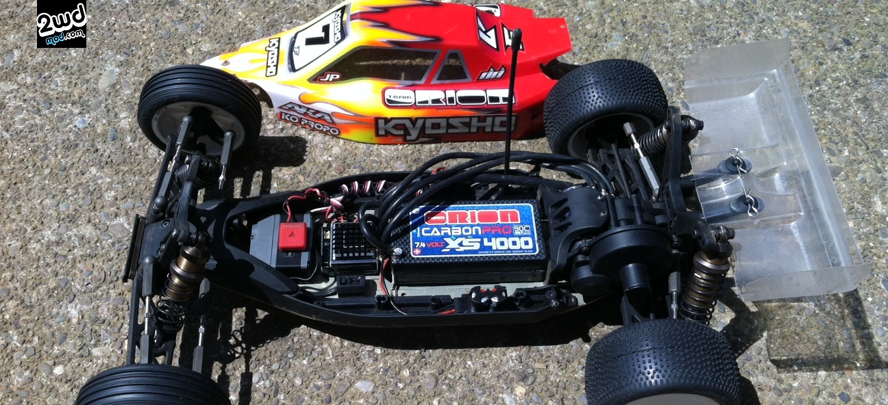 – Ride Height: 25mm front and 24mm rear Team Orion Shorty 4000mah Battery used spaced back in standard direction with ESC located in front location by Servo.