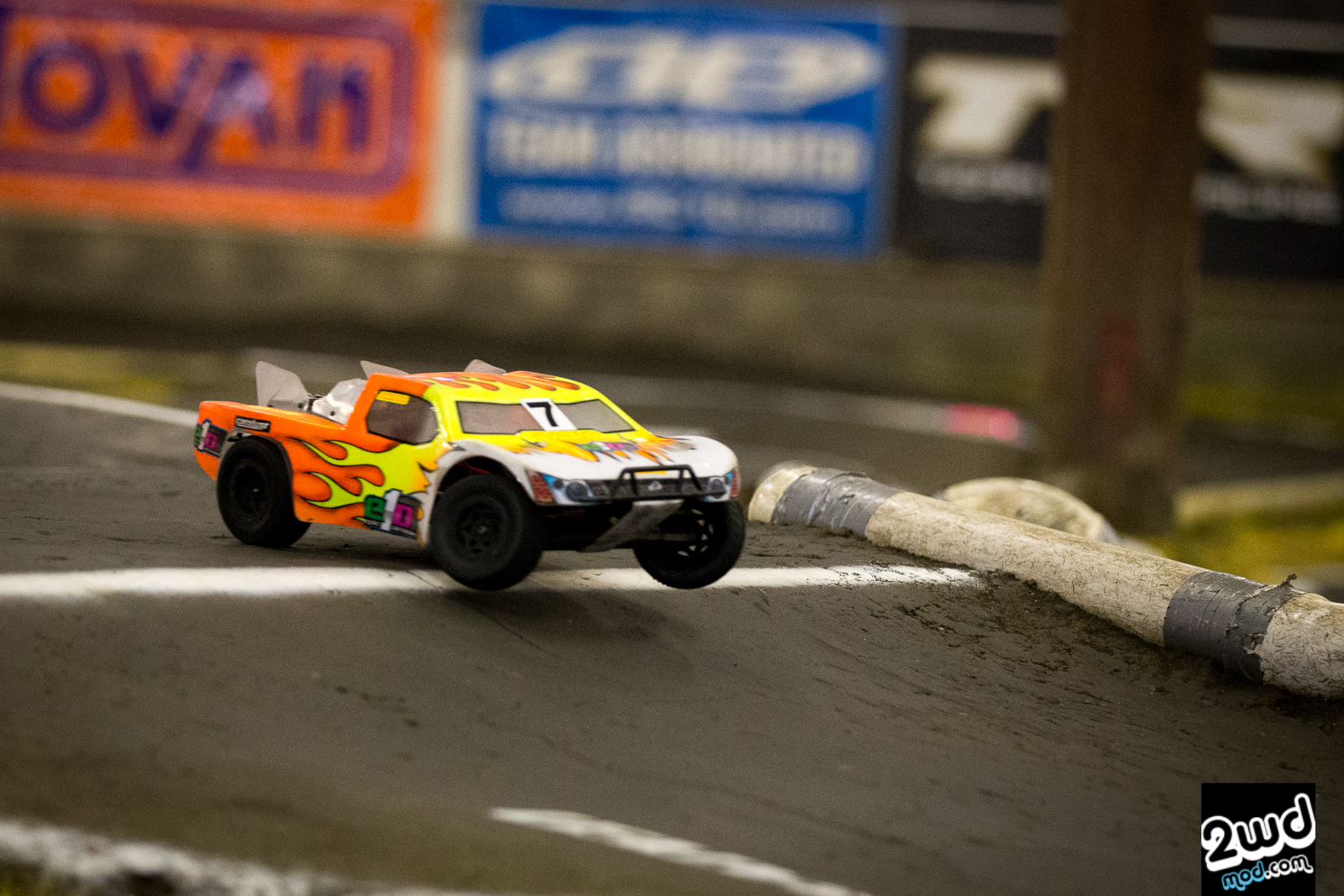 Clear shot of Kyosho’s Tanner Day’s SC6 doing the mean lean. Congrats to Tanner for finishing 3rd on the podium in Mod SC.
