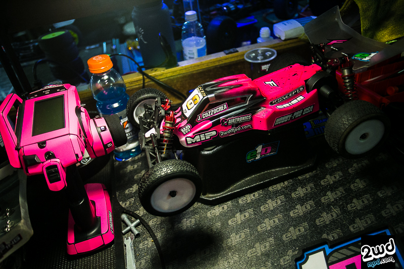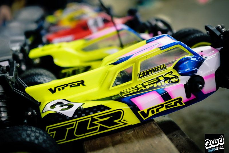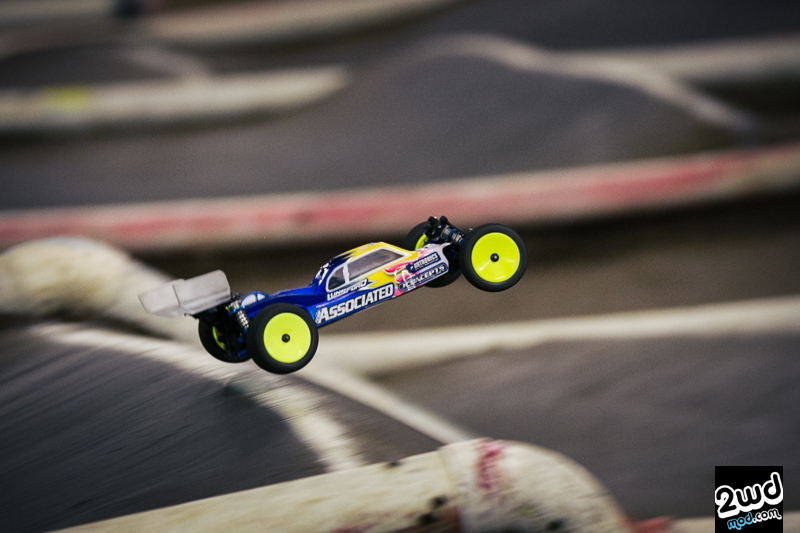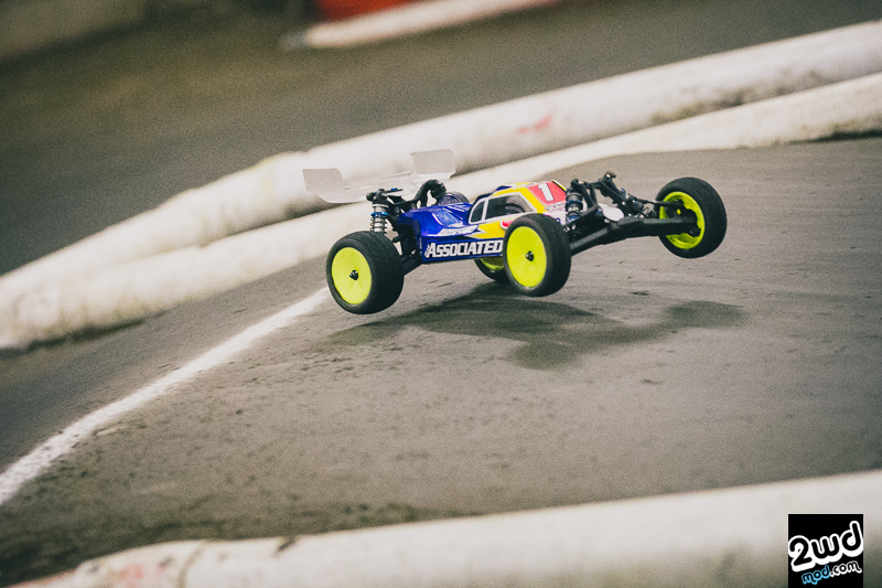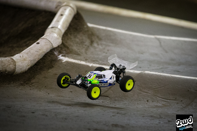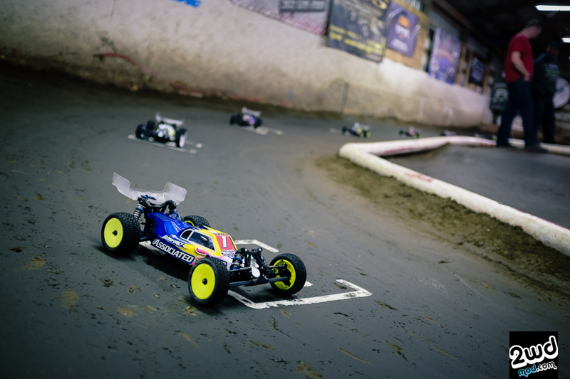 The opening round of qualifying saw a big surprise by Kyosho/Orion/JConcepts’ Tanner Day taking a controversial TQ in Q1. The current points leader, Team Associated/Reedy/JConcepts’ Michael Schoettler, set the early TQ in Q1. However in the very next heat, Day would set off on a blistering pace that was 3 seconds under Schoettler’s TQ time. Slowly, the pace was too great for young Day to maintain as he was slowly slipping back losing a tenth here and a tenth there. After 5 minutes was up, Day managed to stay under Schoettler’s TQ time by a small margin of only . 3 seconds on his final lap. Before crossing the finish line to take TQ, Day would get on the straightaway totally punched and throw his car into the sweeper to try and clinch the Q1 TQ. Unfortunately, Day would clip the inside pipe going into the sweeper and flip his car in the air across the finish line slamming the wall in spectacular fashion. With all eyes on the projector looking for the finishing time, the final lap was uncounted! The call was up to the RD, NW legend and experienced track owner Scott Brown, who decided in favor of Tanner Day and gave the Q1 TQ to the 16 year old Kyosho driver. For the first time, Schoettler’s perfect run of TQ’s in 2wdMod buggy during the NIS was broken.