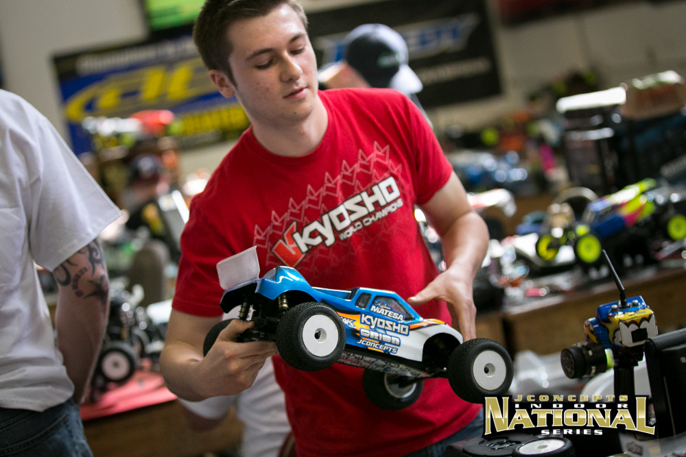 2wd modified saw Ryan Maifield turn the only 19 lap run of the day so far with his TLR 22 2.0. Maifield is running what looks to be a JConcepts Finnisher practice body painted in all white, but has said his painted body should be arriving sometime today. With the track increasing in groove and grip, Maifield was able to turn a 19 lap 5:14.93. The surprise finish of the day was AE/JConcepts’ Luke Smith finishing 2nd for the round, who has been away from the RC scene for over 5 month because of work and relationship. With every pack, Smith is getting more comfortable with his 2wd and looking to finish strong for the weekend. Kyosho/JConcepts’ Tanner Day posted another great round finishing 3rd and only half a second back from Smith. Day said he, “Pushed it too hard when he shouldn’t have,” which cost him a lot of time and the potential TQ for the round.