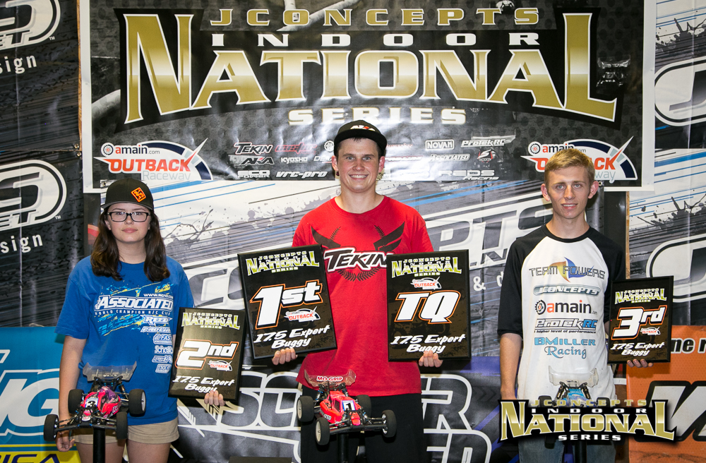 A3 was a battle between Hinz and Schoettler for the overall since Rivkin already had two 3’s. Again, the top 3 would freight train their way from the field and pursue their own fight. This time, it was Hinz traction rolling early in the race leaving him behind with a lot of work to do. With nerves of steal, Rivkin would defend Schoettler’s attack and was determined to keep the lead. Mistake free, Rivkin would slowly pull away and build a small comfort gap and maintain it till the very end for the win. Schoettler would finish 2nd and Hinz 3rd. With neither Hinz or Schoettler taking the win in A3, the overall would be decided by tie-breaker. Schoettler would be crowned your 2015 JConcepts Summer Indoor 2wd National Champion by the difference of .6 seconds!