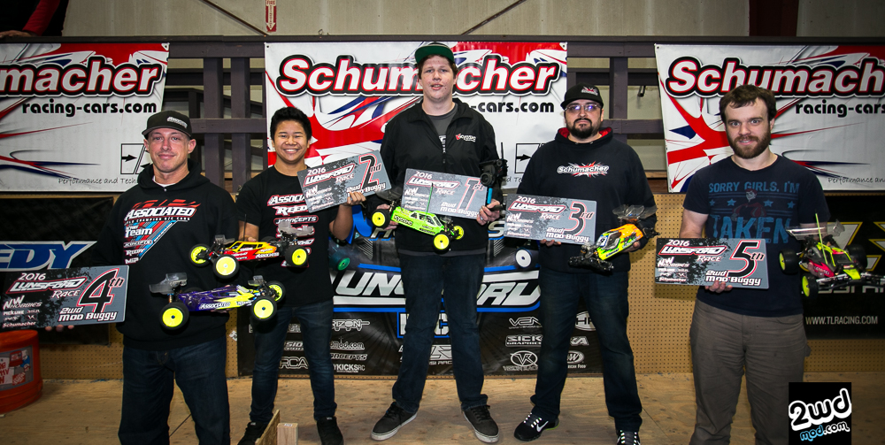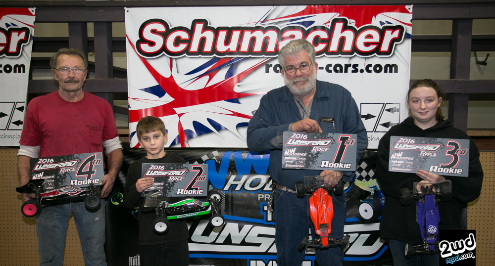 With the best-combined 2wdmod and 4wdmod results, the 2016 Lunsford Grand Champion is the talent from T-Town, Tacoma’s own AE/JConcepts’ Harley Yoshii. With his 2nd place finish in 2wd and 1st place finish in 4wd, Yoshii takes the trophy home for a year and gets his name engraved on the Lunsford trophy as the 2016 grand champion! Congrats to young Harley for his excellent win!
